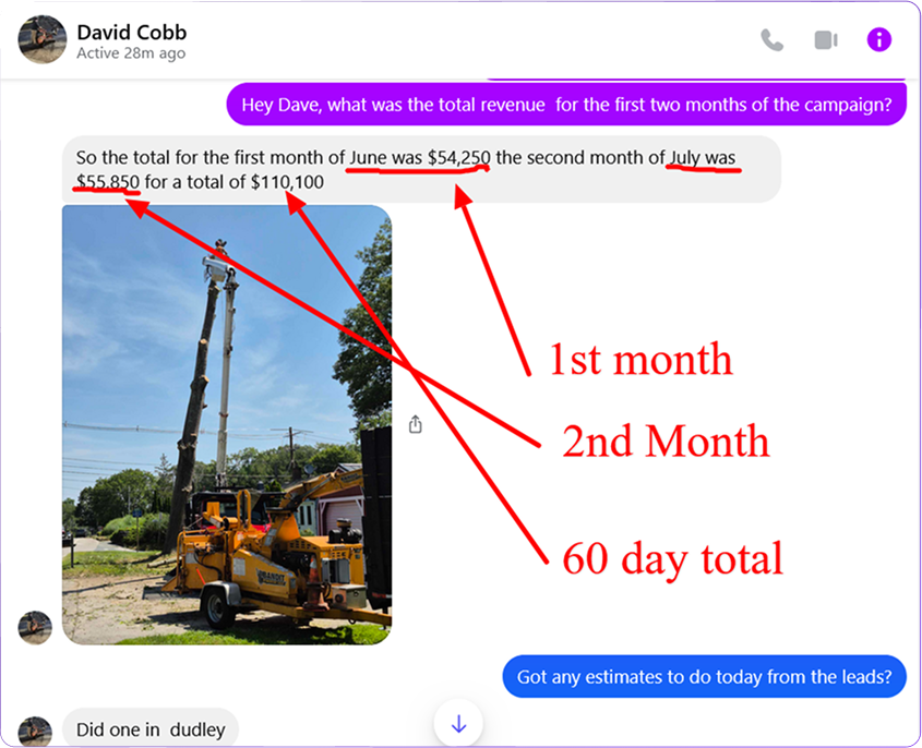 You’ve spent money on marketing before — maybe got some clicks or calls. But how much cash hit your account? That’s what we measure. This chart shows how one tree service added over $110,000 in just 60 days. No guesswork. No BS. Just jobs on the board and dollars in the bank.